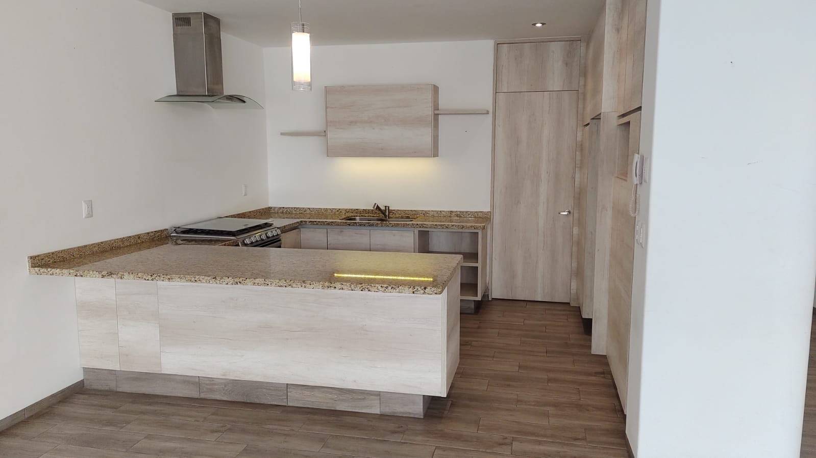 Cocina con barra de granito